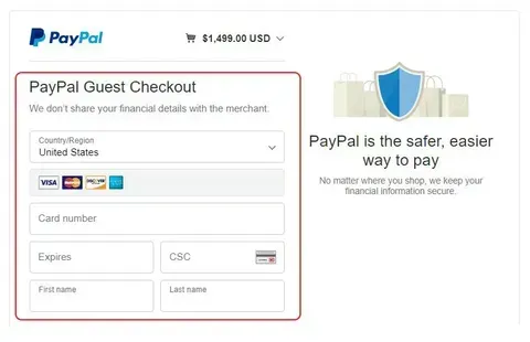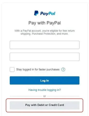 Pokud nemáte účet PayPal, vyberte na platební stránce PayPal a poté klikněte na „Dokončit objednávku“. Budete přesměrováni na stránku, kde můžete použít svou debetní nebo kreditní kartu.